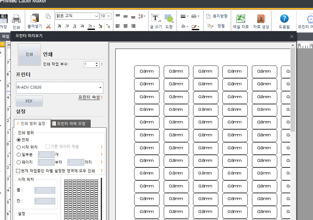 • 미리보기 및 정밀 인쇄 설정: 인쇄 전 라벨의 최종 모습을 미리 확인할 수 있는 미리보기 기능을 제공하여 인쇄 오류를 줄여줍니다. 또한, 용지 여백, 인쇄 방향, 인쇄 매수 등 다양한 인쇄 설정을 정밀하게 조정할 수 있어 최적의 결과물을 얻을 수 있습니다.